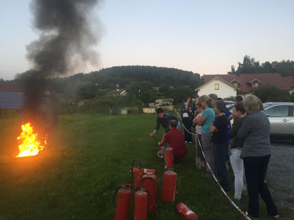Am 01.08.2016 fand in unserer Einrichtung die Brandschutz Fortbildung statt. Nach einem theoretischen Teil konnten unsere Mitarbeiter den praktischen Umgang mit einem tragbaren Feuerlöscher üben. Ein herzliches Dankeschön an die Freiwillige Feuerwehr Miltach e.V. für ihre Unterstützung und ihr Engagement bei dieser Fortbildung